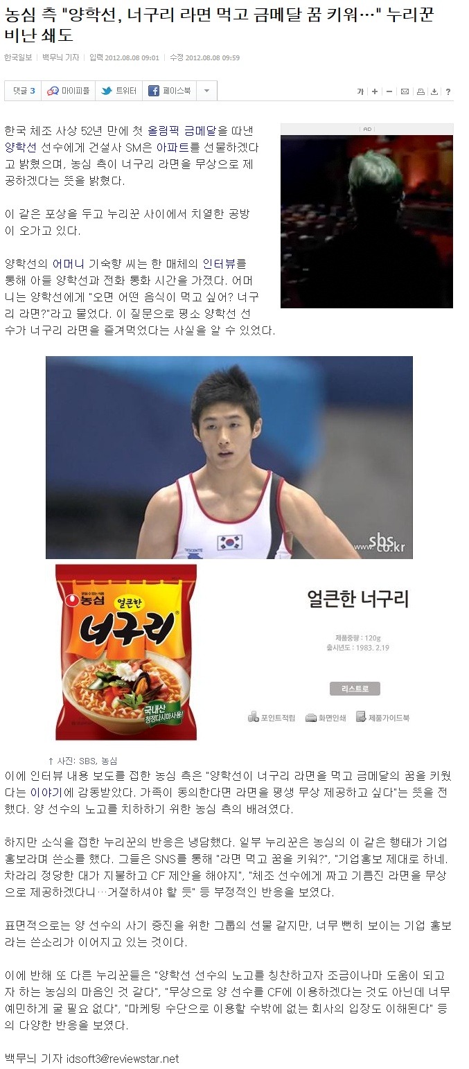 양학선 선수는 돈이 없어 비닐하우스에서 살았는데, 요번 금메달을 따면서 어느 건설회사가 아파트도 줬고, 너구리 라면을 양학선. Best 내가 양학선 금메달 따는걸 봤던게 벌써 9년 전이라니.세대교체가 되버렸다니ㅋㅋㅋㅋㅋ.